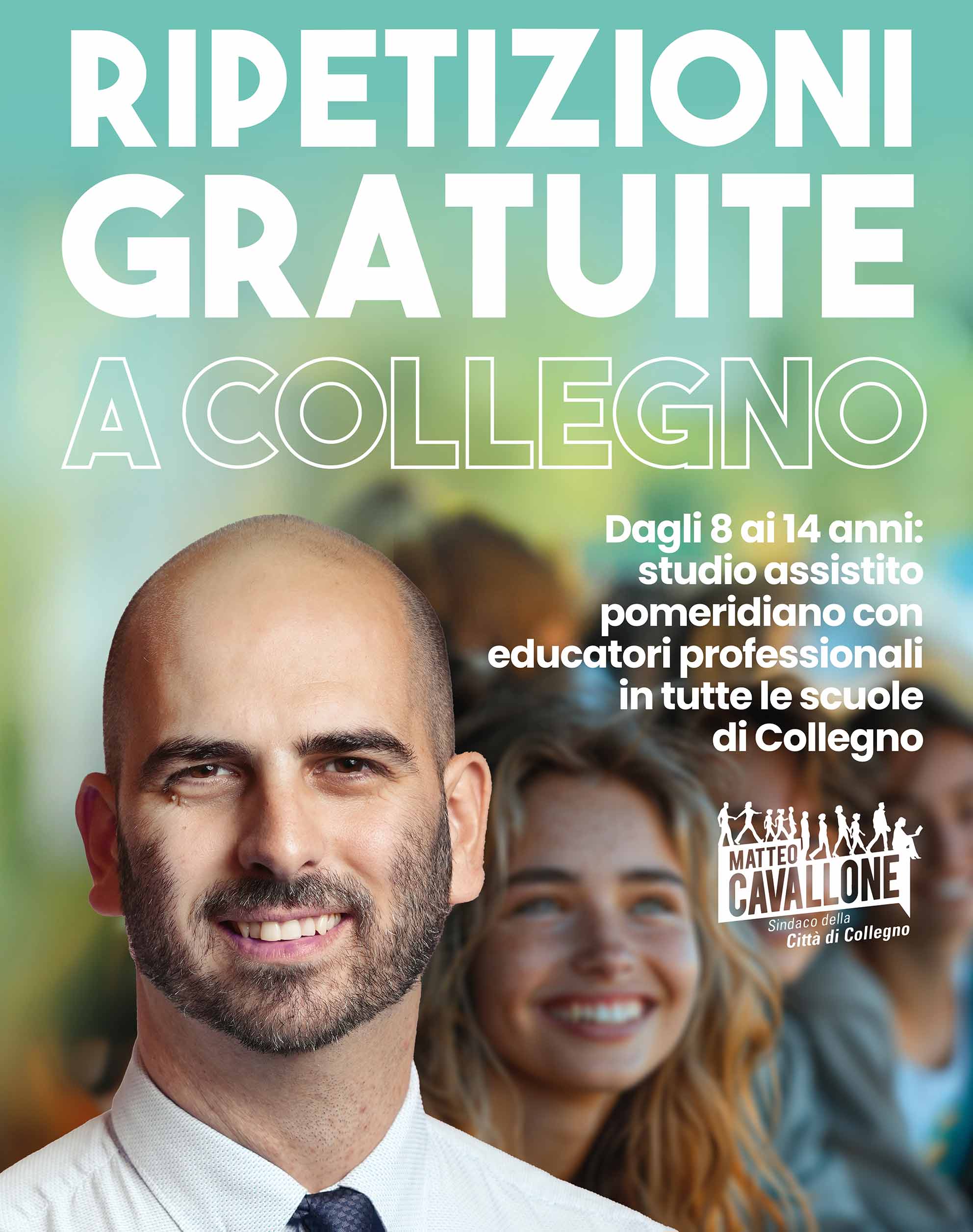 A partire da questo anno scolastico, a Collegno inizia un nuovo progetto educativo per contrastare la dispersione scolastica e promuovere il successo formativo: ripetizioni scolastiche e studio assistito gratuiti al pomeriggio rivolte agli alunni delle classi quarte e quinte della scuola primaria e agli studenti delle scuole secondarie di primo grado.
